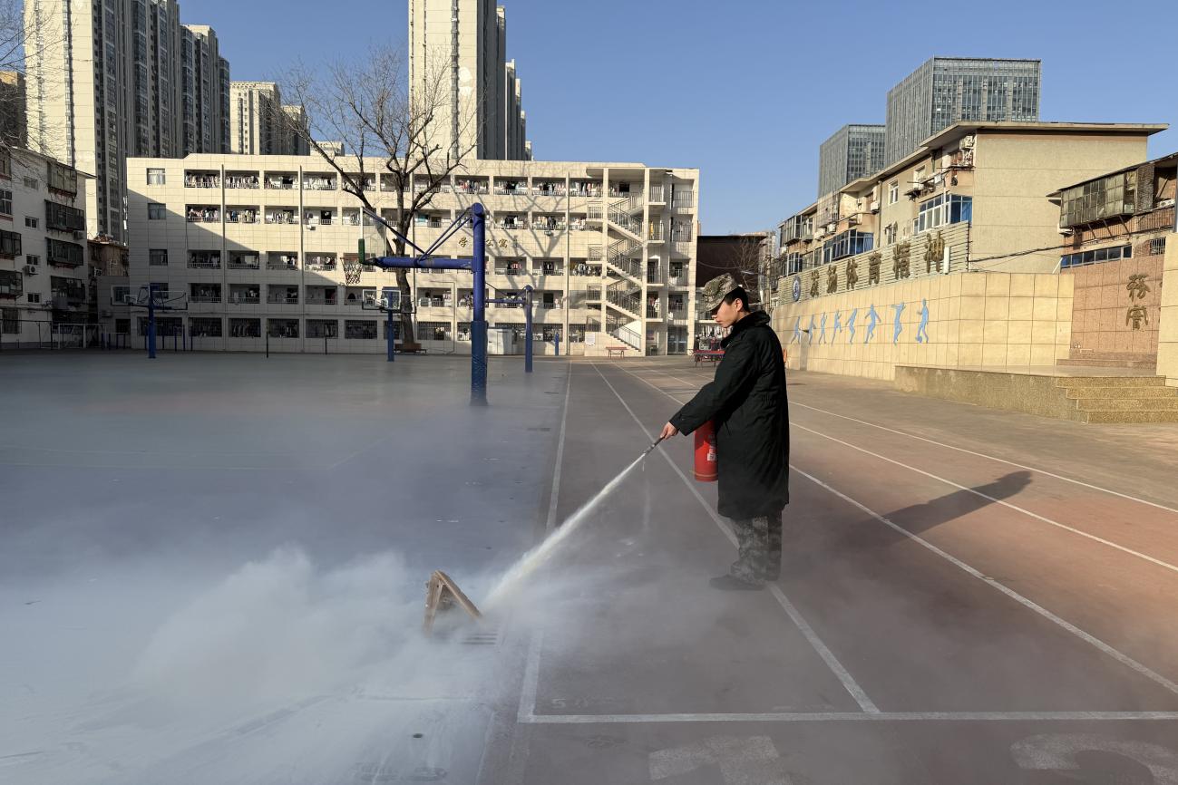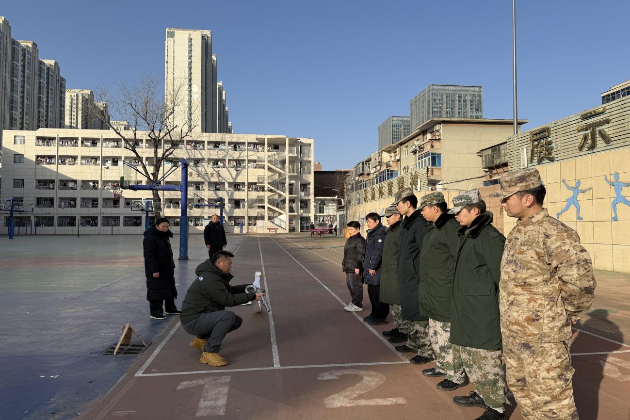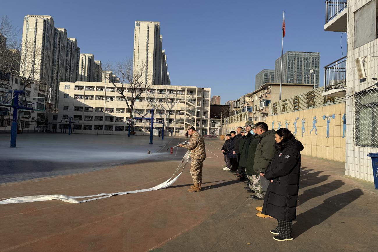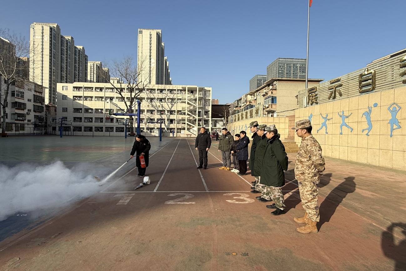 在政教处张念老师的示范下,参训人员分组进行了干粉灭火器实际操作演练。大家认真学习“一提、二拔、三握、四压”的操作步骤,通过反复练习掌握使用技巧,确保在紧急情况下能够熟练运用。