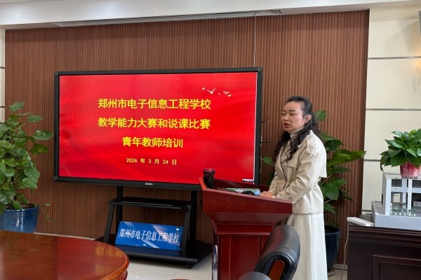 为巩固青年教师教学基本功,提升信息化教学设计与赛事备赛能力,助力学校即将开展的信息化说课比赛。2026年3月24日下午,教务处组织部分青年教师在务实楼小会议室开展“中职教师如何说课”专题培训会,特邀市级、省级、全国级“创新杯”信息化教学设计及说课比赛一等奖获得者、郑州市电子信息工程学校罗菲老师进行深度授课。本次培训由教务主任刘奇超主持。