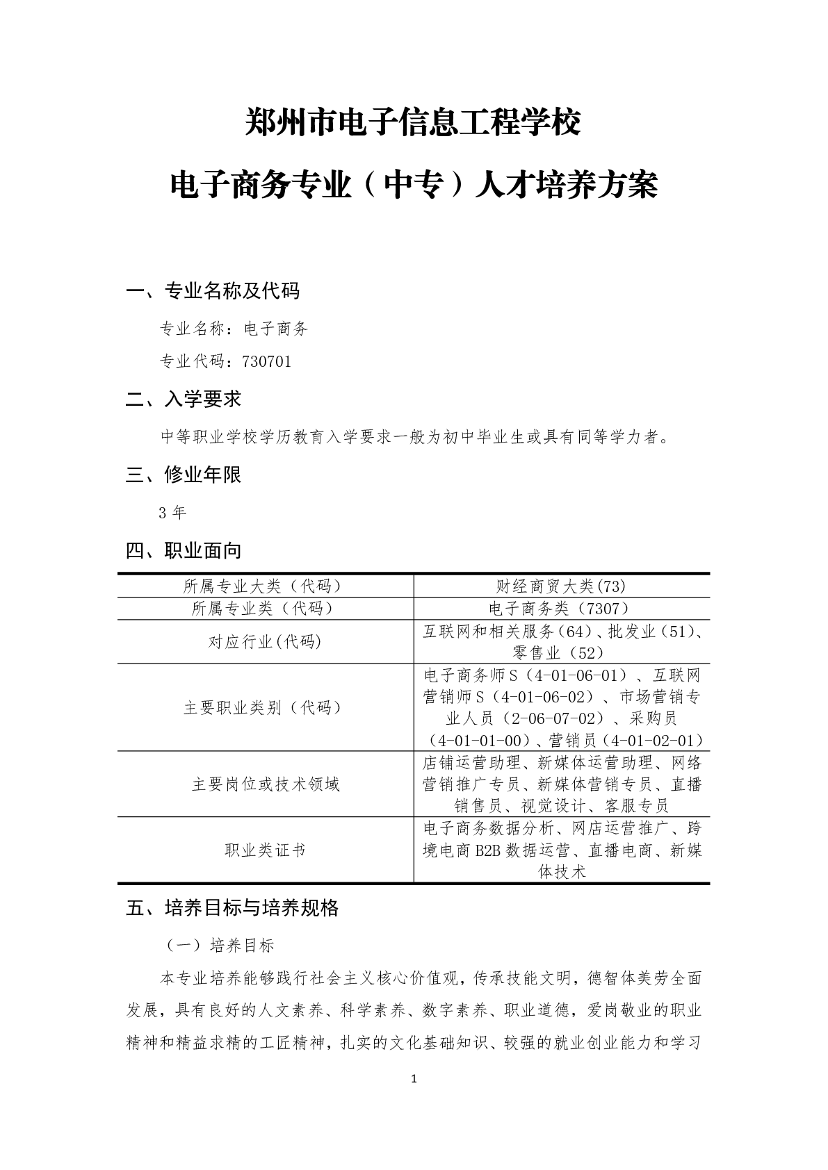 电子商务专业(高考)人才培养方案(2025)