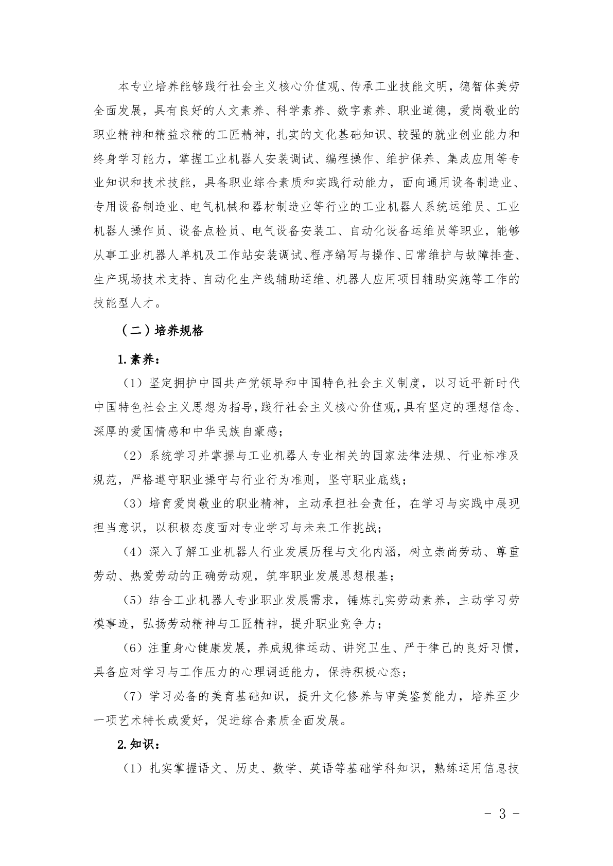 工业机器人技术应用专业(3+2)人才培养方案(2025)